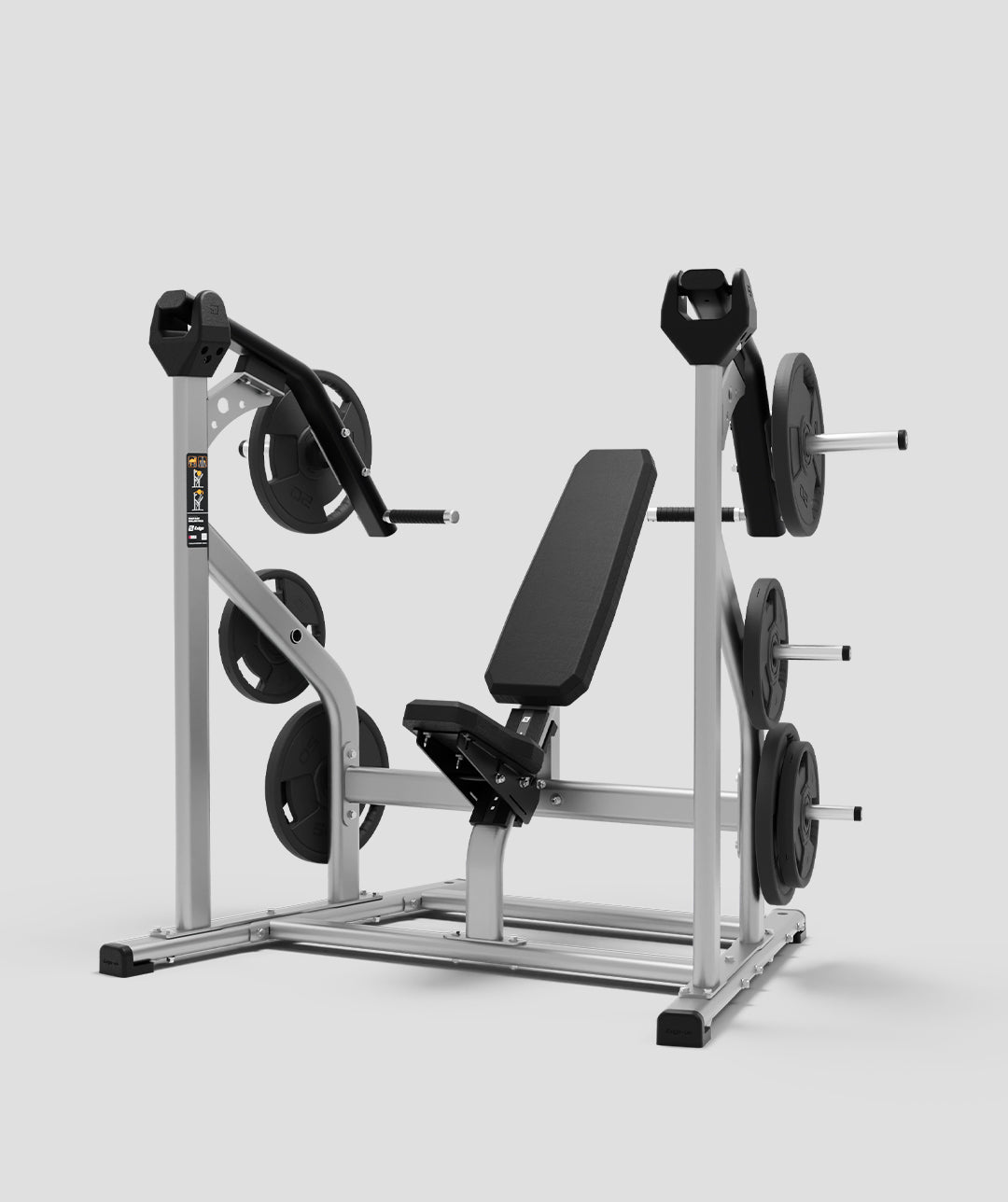 The Exigo Plate Loaded Iso-Lateral Front Pivot Shoulder Press targets the deltoids and is designed with an angled back pad for improved stability during heavy loads and to also discourage hyper extension of the spine. Independent arm movements allow the user to train each limb simultaneously or separately, as well as loading different weights for each limb if necessary. 38mm rubber ribbed handles provide great comfort and feature caped anodised aluminium ends for additional protection. Optional chrome storage horns with high impact ends are also available to provide storage for weight plates. This machine is made with 100x50x3mm Flat Sided Oval and is fully commercial with a lifetime warranty on the main frame.